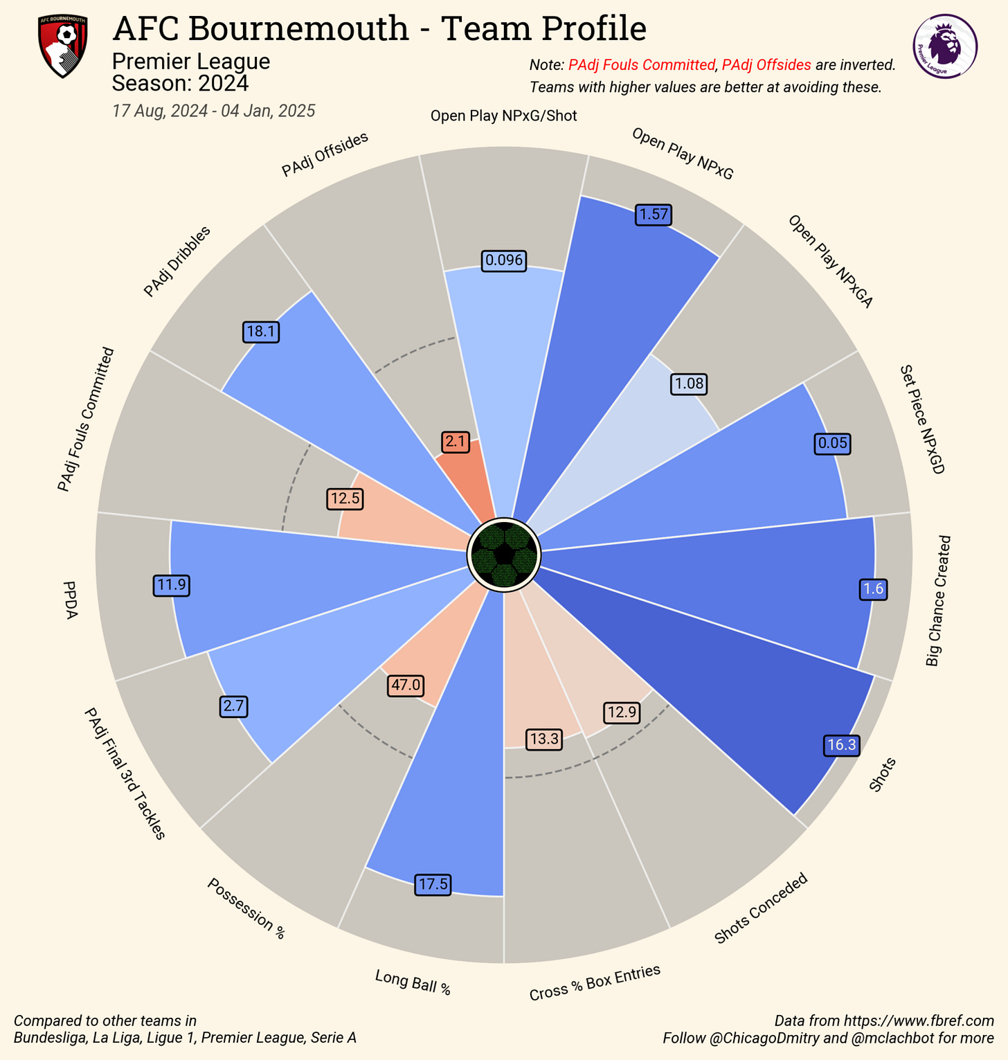 Bournemouth is known for their high intensity pressing, with 11.9 passes per defensive action, so Chelsea needs to focus on build-up play and avoid mistakes. If Bournemouth sits deep and does not contest The Blues, then individual creativity and a more dynamic team will be needed to break down the block, and hopefully Chelsea can find that in this game.