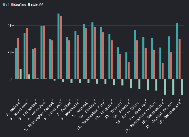 Although Bournemouth is generating plenty of chances, they are the most wasteful team so far. Looking at the sheer number, they generated 42.02 xG, more than Arsenal or Manchester City, but they only scored 30 goals, giving them a whopping -12.02 xG difference. Yet there is one more problem that adds to that. Both Evanilson and Enes Ünal are out for this game, leaving Bournemouth without an established striker. Even though Dango Outtara and Semenyo both play in the striker position for their countries, making them in charge would leave Bournemouth without proper wingers.
